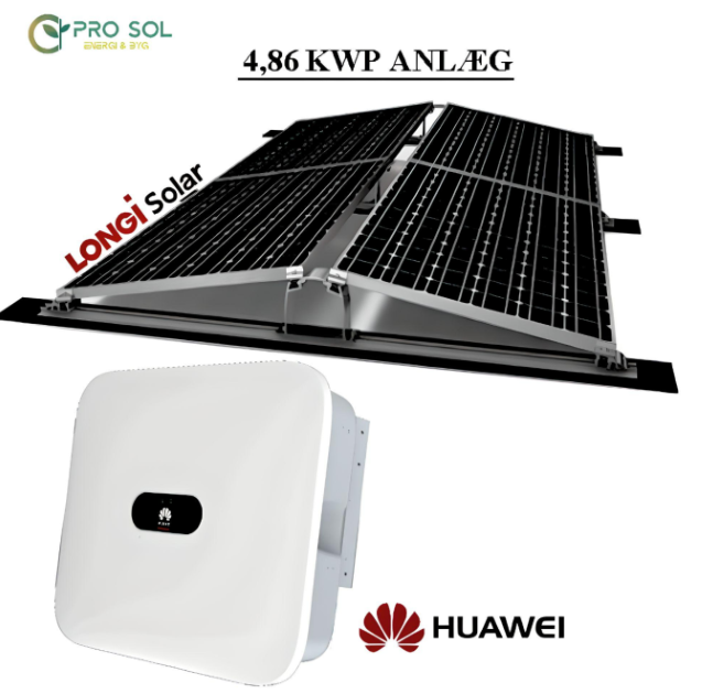 Denne solcellepakke på 4,86 KWP er beregnet til fladt tag, som indeholder alt nødvendigt udstyr, herunder: inverter og et montagesystem til anlægget. Denne løsning er designet til øst-vest orienteret installation på flade tage med tagpap.